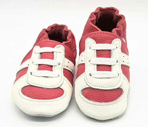 LEPEPPE - Scarpine in Pelle Prima infanzia - Pantofole Babucce - Neonato - Nido - Materne Danza - Primi Passi fino al 32/33!!! Runner Sneakers Scarpa da ginnastica rossa (5XL (21 cm di suola))
