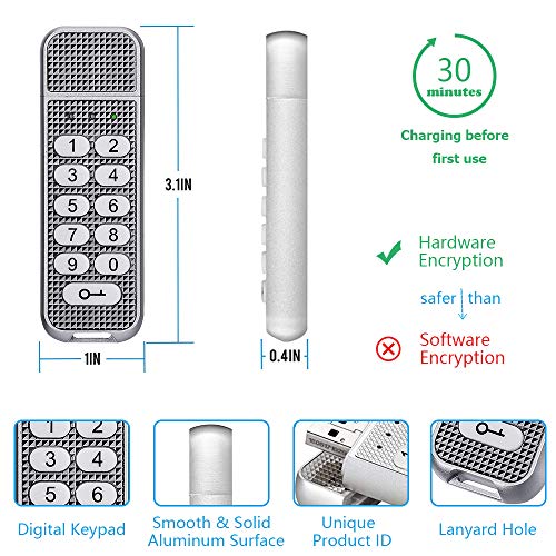 Lepin - Chiavetta USB criptata, 32 GB, in alluminio, con tastiera per protezione password, protezione hardware AES XTS a 256 bit (argento)