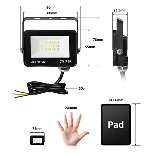 Lepro Faretto LED da Esterno, 10W 850 lumen, Faro LED Esterno Bianco Diurno 5000K, Proiettore da Esterno Impermeabile IP65, Luce di Sicurezza per Giardino, Corridoio, Illuminazione Interna ed Esterna