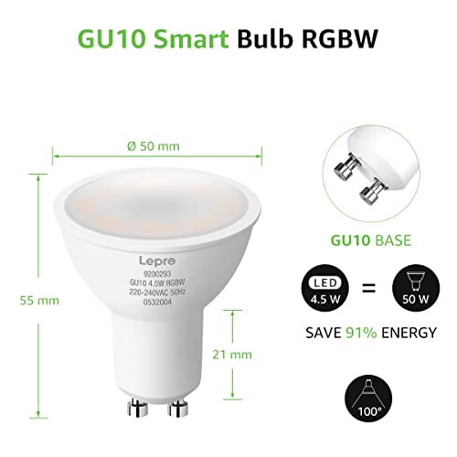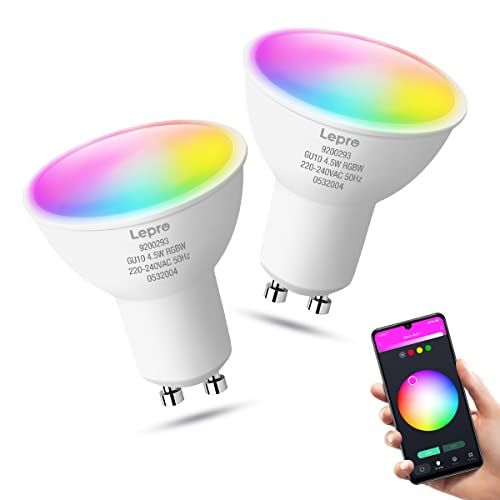Lepro Lampadina LED GU10 WiFi Intelligente RGBW, Faretti LED Smart Compatibile con Alexa e Google Home, 4.5W (=50W), Luce Dimmerabile RGB + Bianco Caldo, Nessun Hub Richiesto, 2 Pezzi