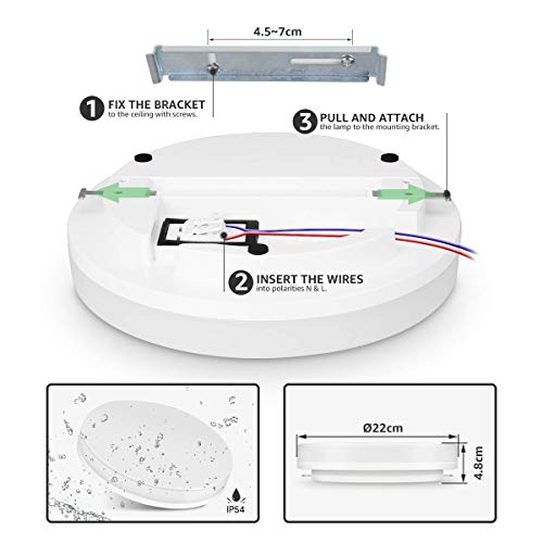 【Impermeabile IP54】 Progettato con grado di protezione IP54, resistente agli spruzzi d'acqua, adatto per le zone umide come bagno, cucina. Comunemente utilizzato in bagno, cucina, casa, camera da letto, corridoio ecc.