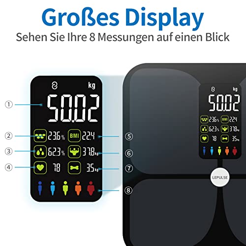 Lepulse Bilancia Pesapersone Professionale Lescale F4 PRO, Migliore Bilancia Impedenziometrica, Bilancia Massa Magra e Grassa, Intelligente Bilancia Smart, Bluetooth Bilancia Digitale con App, kg/lb