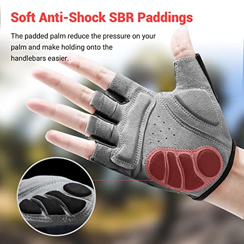【L'imbottitura SBR per Antiurto】 I guanti da ciclismo mezze dita estivi è il guanto da ciclismo con imbottitura e comfort extra. L'imbottitura è 4 mm di SBR gel. Questo mix di materiali impedisce la formazione di rughe e i palmi delle mani rimangono sempre ben imbottiti. Ideale per i conducenti con mani sensibili, per lunghe distanze o condizioni stradali accidentate.