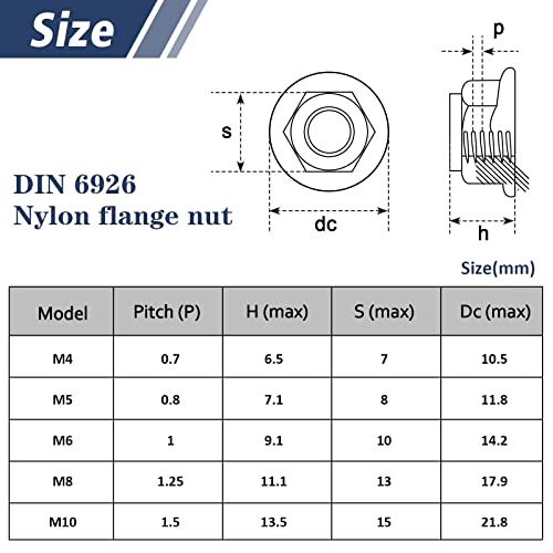 Dimensioni specifiche: offriamo dadi esagonali a flangia con morsetto in plastica, a norma DIN 6926, è possibile scegliere il dado dell'asse della flangia in base alle dimensioni delle viti o dei bulloni, e diverse dimensioni possono soddisfare le vostre esigenze di dadi di bloccaggio flangia.