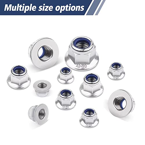 Materiale di alta qualità: dadi esagonali con flangia autobloccante, realizzati in resistente acciaio inox A2 V2A 304 e nylon, la superficie del dado della flangia è liscia con lucentezza metallica che ha una buona corrosione, ruggine e resistenza all'ossidazione. Può essere utilizzato anche in ambienti interni, esterni e umidi.