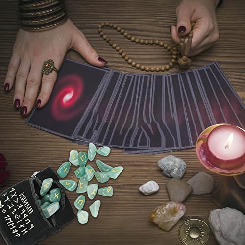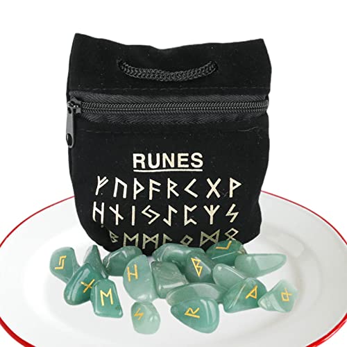 ☾【Materiale di alta qualità】 Le pietre runiche sono composte da 25 pietre naturali di avventurina verde, ogni pietra runica ha una superficie perfettamente liscia e trasparente, che è resistente e non fa male alle mani.