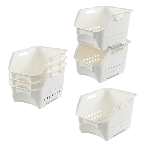 Lesbye 3 Tier Cestini in Plastica Impilabili, Cesto Portaoggetti Impilabile, Bianca