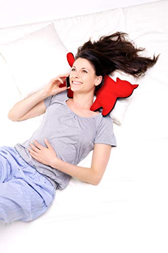 Leschi | Cuscino da viaggio (per i viaggi in macchina, aereo, autobus e treno) | 36703 | La gatta Feline | Colore: Fenicottero/Mezzanotte