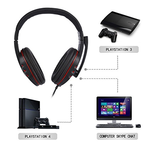 LESHP - comode cuffie stereo da gaming, over-ear, con microfono e cavo USB, in similpelle, per giochi per Sony PS3, PS4 e pc portatile, utilizzabili anche per Skype