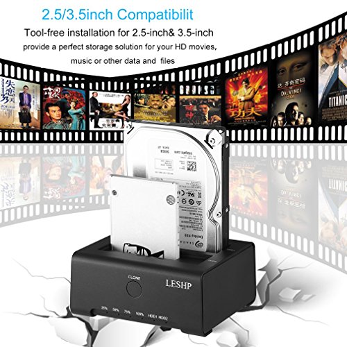 LESHP Docking Stations per Hard Disk Dual 2 Bay USB 3.0 in Alluminio Compatile per 2.3/3.5 Inch SATA HDD e SSD