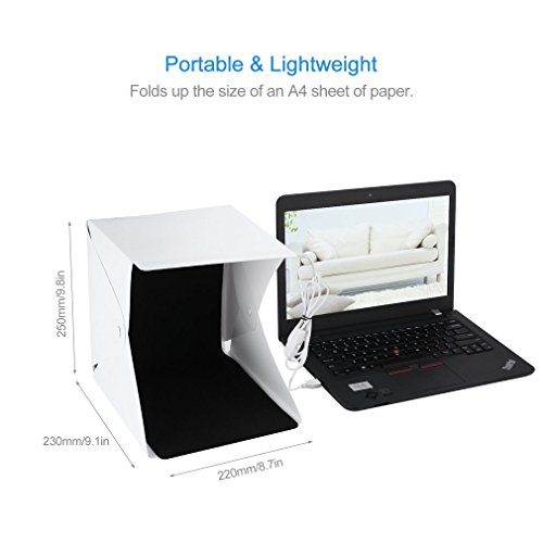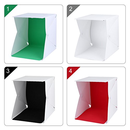 LESHP Tenda Studio con LED Cavo USB Interruttore Indipendente 4 Sfondo Nero Bianco Rosso Verde (22X23CM)