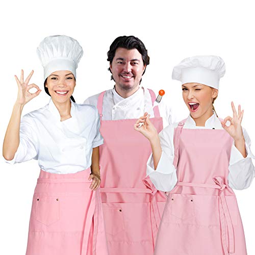 LessMo Barbecue Grembiule, Grembiule da Cucina 100% Cotone Grembiule con Laccio Regolabile e Due Tasche, qualità Professionale, 70 x 85cm, Rosa