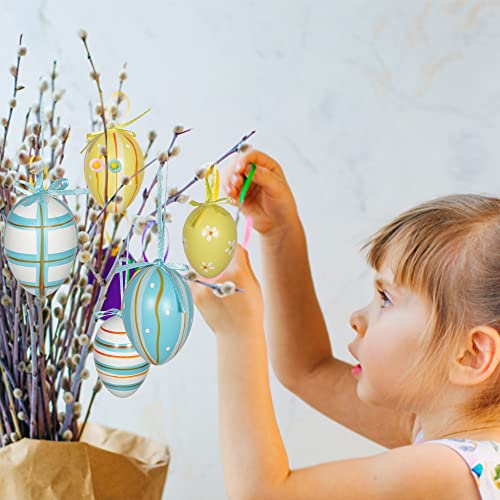 Cosa riceverai: confezione da 12 uova di plastica sospese di Pasqua con corde, 6 stili, quantità e stili sufficienti per il tuo uso quotidiano o per la sostituzione delle vacanze.