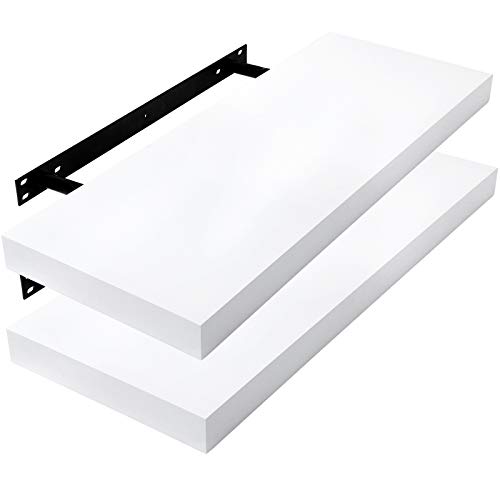 Lestarain Set di 2 Mensole a Muro Rettangolare Bianco Mensola a Parete in MDF Piccola Libreria Sospesa a Muro Portaoggetti Decorativo per Soggiorno Camera da Letto 80x22.9x3.8cm LGA073-2