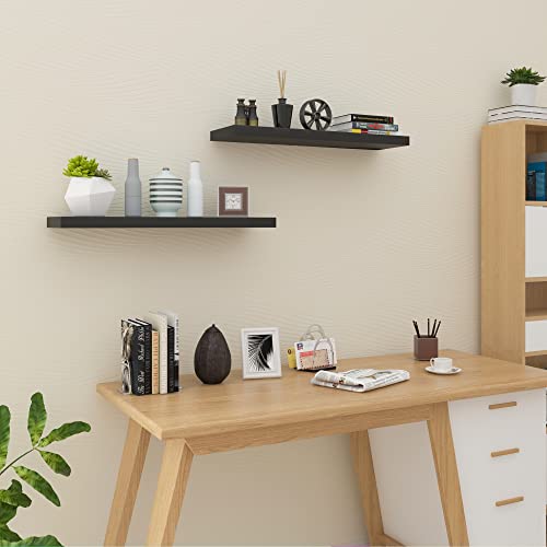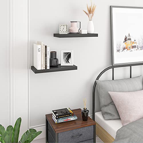 Lestarain Set di 2 Mensole a Muro Rettangolare Nero Mensola a Parete in MDF Piccola Libreria Sospesa a Muro Portaoggetti Decorativo per Soggiorno Camera da Letto 30x23x3.8cm LGA095-2