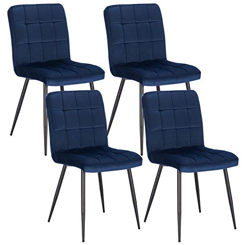 Lestarain Sedia Sala da Pranzo Moderna Set di 4 Sedie Imbottite Senza Braccioli in Velluto Rasato per Cucina Sala d'Attesa Gambe Metalliche Blu LCNI78002-4