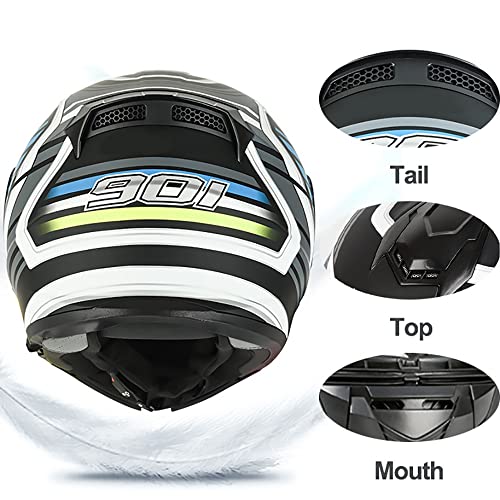 【SISTEMA DI VENTILAZIONE】 - La circolazione dell'aria è più confortevole, più prese d'aria possono risolvere facilmente il problema del calore e il flusso d'aria leggero aiuta il conducente a rimanere fresco e confortevole. Il design aerodinamico riduce il rumore. Il corpo del casco ha un design aerodinamico per ridurre la resistenza e rendere la guida più agevole.