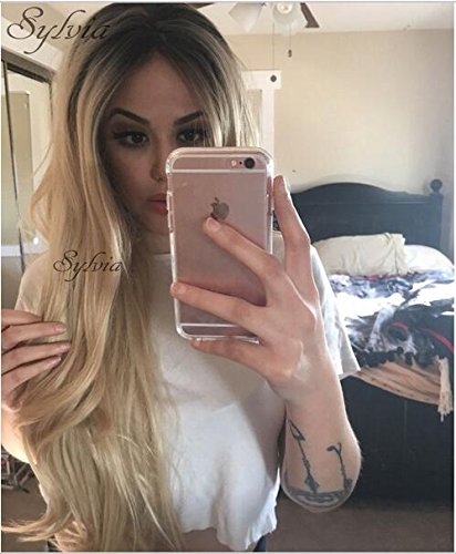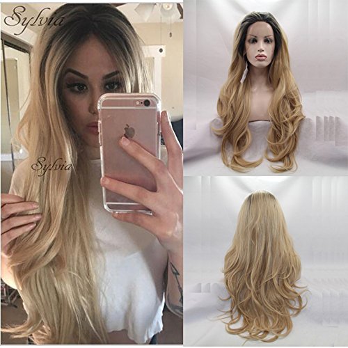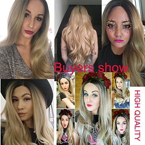 Letian Hairs - Parrucca sintetica con pizzo frontale, da donna, 61 cm, morbida, con radici scure, senza colla, legata a mano, resistente al calore, colore: biondo naturale