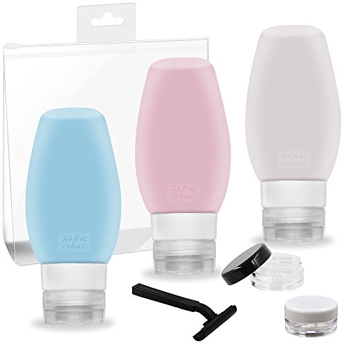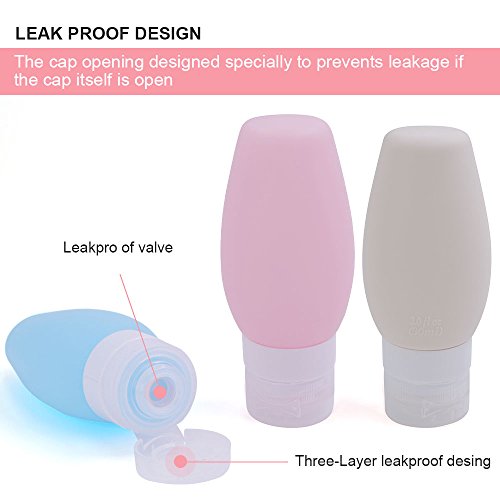 Letilio set flaconi da viaggio, portatile a prova di perdite cosmetici shampoo, lozioni, gel doccia, sapone, contenitori, pop-up, ricaricabile, food grade silicone