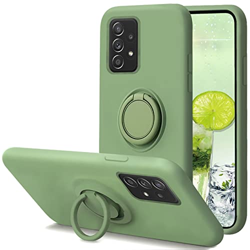 Leton Cover per Samsung Galaxy A52 Silicone Liquido, Custodia Samsung Galaxy A52 Anello Supporto Magnetico per Auto Case con Fodera in Microfibra Antiurto Case Verde