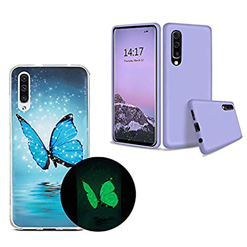 Leton-IT [2 Pack Cover per Samsung Galaxy A50 2019, Custodia Silicone Luminoso Nottilucenti Fluorescente + Cover Samsung A50/A30S/A50S Liquid Silicone TPU Case with Soft Microfiber Farfalla Viola