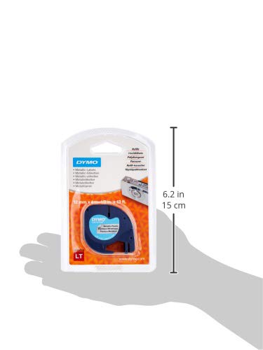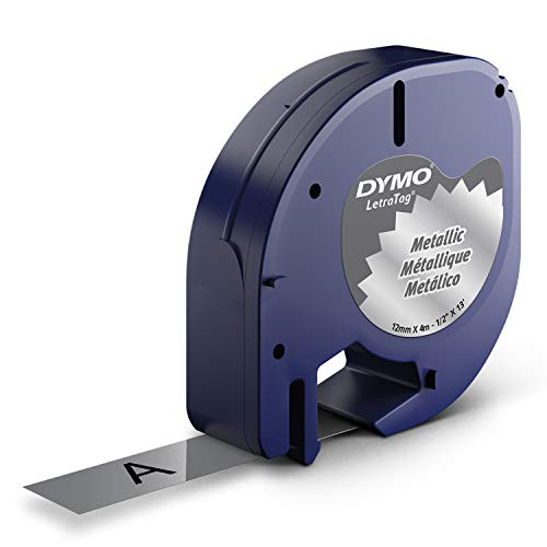 Dymo LetraTag etichette multiuso autoadesivo in plastica, rotolo da 12 mm x 4 m, stampa nera su argento metallico, S0721750