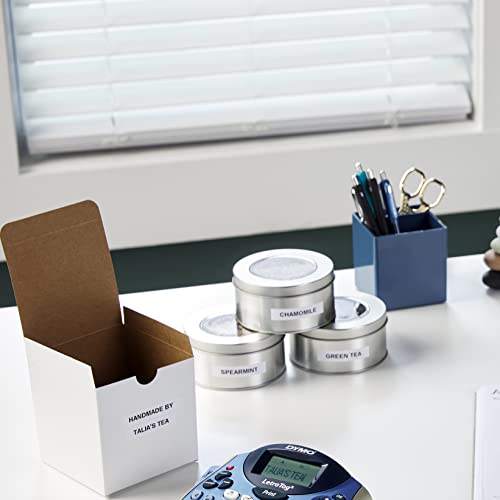 DYMO LetraTag etichette in plastica, autentico, stampa nera su bianca, 12 mm x 4m Roll, autoadesiv, per le etichettatrici DYMO LetraTag
