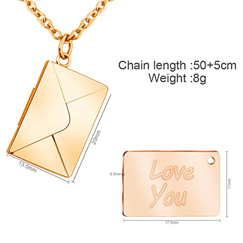 Love Letter Confession Love You Envelope Necklace,Creative Love Message Locket Pendant Necklace,Personalized Photo Envelope Locket Necklace,Valentine Day Mother Day Jewelry Gift (Gold)