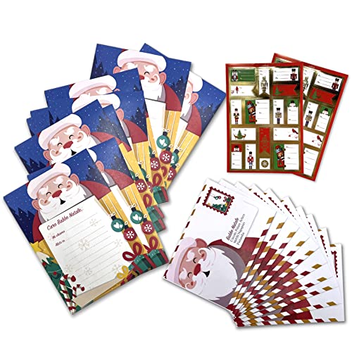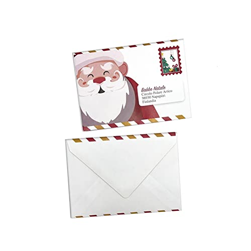 set 10 lettera per babbo natale + 10 bustina + 10 cartoline + 32 adesivi stickers