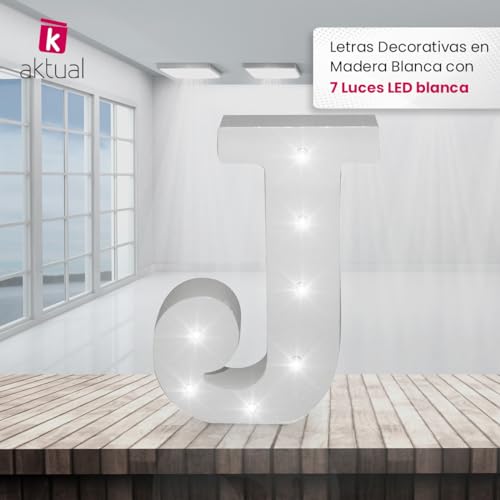 Lettera bianca decorativa con luce LED bianca (legno) (J)
