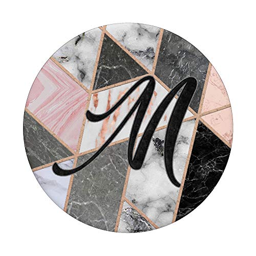 Lettera-m nero su Rosa rosa Grigio Bianco PopSockets PopGrip Intercambiabile