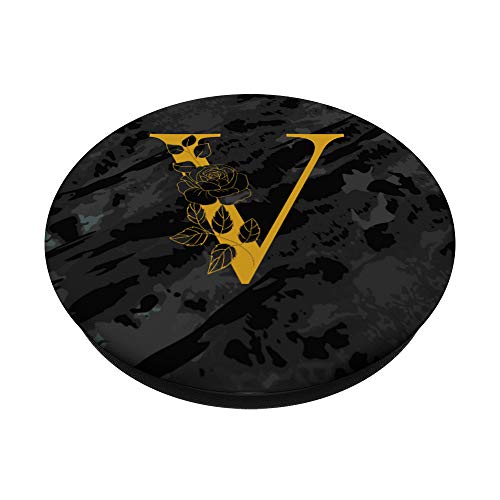 Lettera Monogramma V Nero PopSockets PopGrip: Impugnatura per Telefoni Cellulari e Tablet Intercambiabile