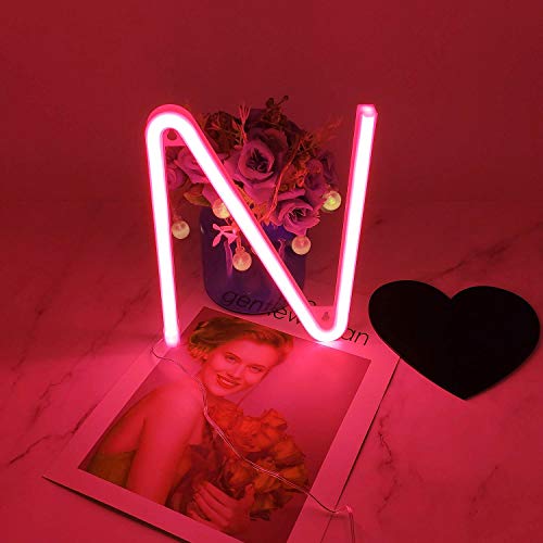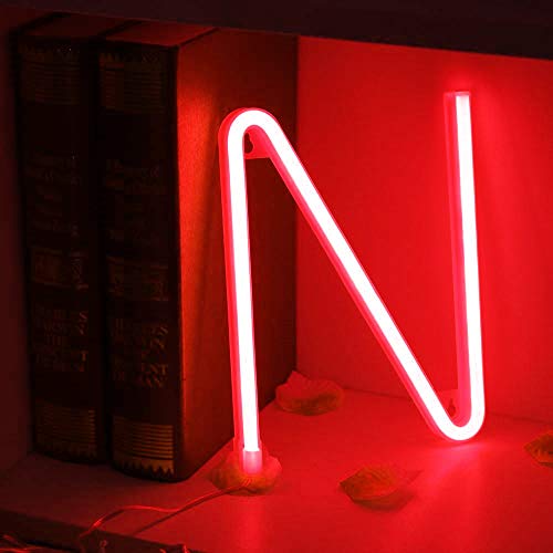 Lettera di Luci al Neon, LED Neon Night Light Luci al Neon per Camera da Letto per Bambini Batteria USB Rosso (N)