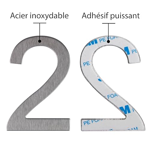 Utilizzo: Numero civico, per carta / porta, in acciaio, con parte posteriore adesiva.