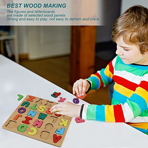 Lettere Alfabeto Bambini, LNSYSNS 2 Pezzi Puzzle Legno Bambini, ABC e Numeri Puzzle in Legno per Bambini Gioco Bambino 1-3 Anno, per Bambini e Bambini in Età Prescolare