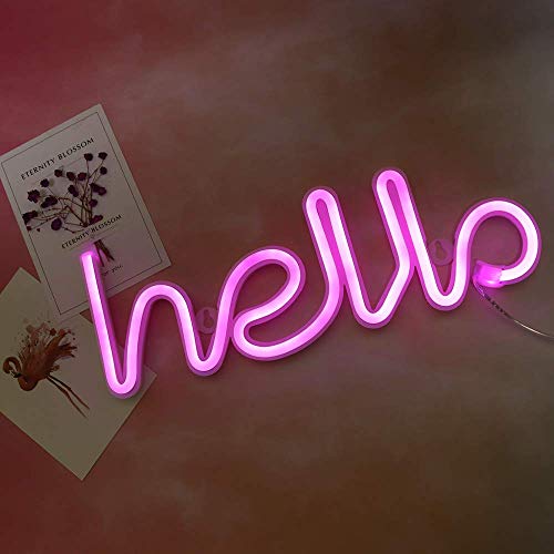 ★ Purple Hello Neon Sign con lettera "ciao" forma, emana luce rosa morbida al neon, carattere alfabetico crea un ambiente da sogno e romantico nella tua camera da letto. Le luci al neon decorative della parete della decorazione per la stanza per sostituire la lampada da scrivania smussata, servono il vostro scopo di decorazione e di illuminazione.