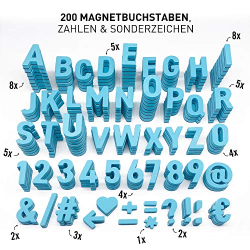 Magnetismo efficace: ogni set è composto da 200 lettere magnetiche, numeri e caratteri speciali. Perfetto per frasi impertinenti sul frigorifero, su lavagne magnetiche o superfici metalliche in generale.