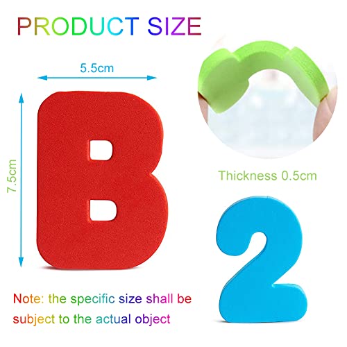 CONTENUTO DELLA CONFEZIONE: Questo giocattolo da bagno include 26 lettere di schiuma (A - z) e 10 cifre di schiuma. La dimensione è di circa 7,5 x 5,5 x 0,5 cm. Quando non si utilizzano questi giocattoli in schiuma, è possibile lavarli con sapone e asciugarli.