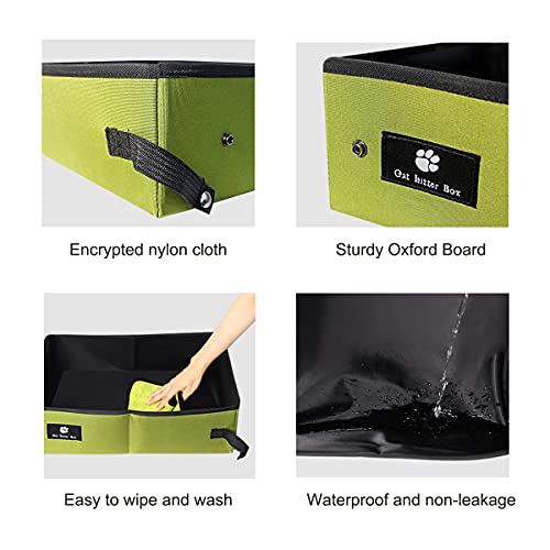 Lettiera portatile per gatti da viaggio, morbida, impermeabile, pieghevole e leggera, con 1 ciotola pieghevole e 1 pala (verde, 40 x 30 cm)