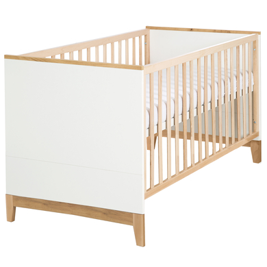 Il lettino combinato roba Finn con il suo look bicolore in quercia dorata e bianco è l'alto light nella stanza del bambino o dei bambini. Il letto per bambini e neonati cresce con il tuo bambino dalla nascita fino all'inizio della scuola. La posizione sdraiata superiore del lettino regolabile in altezza a 3 posizioni è particolarmente facile per voi genitori. Potete facilmente sollevare il vostro bambino dal lettino da questa altezza di sdraio. Più tardi, la posizione intermedia è la scelta perfetta, perché le 3 barre di scorrimento rimovibili nell'elemento del lettino permettono al bambino di entrare e uscire in sicurezza. La posizione più bassa del lettino regolabile in altezza è destinata al letto Junior . Quando il tuo bambino è più grande, il lettino combinato può essere convertito in un letto Junior utilizzando le sponde di conversione che sono disponibili separatamente. La testiera e la pediera del lettino combinato possono essere divise. Quando si converte in un letto Junior, le due metà superiori della testiera e della pediera vengono utilizzate e creano un nuovo look nella cameretta. Il lettino combinato Finn può essere utilizzato fino a quando il bambino ha 7 anni (o fino a un peso corporeo di 50 kg). Il letto per bambini roba e Junior ha una superficie di sdraio di 70 x 140 cm. Se vuoi trasformare il lettino in un letto a baldacchino, i nostri set da 4 pezzi per lettino roba composti da cuscino, coperta, baldacchino e nido sono ideali. Il lettino combinato roba è sviluppato in Germania e soddisfa gli attuali standard di sicurezza secondo la norma EN 716 - 1:2017 + AC:2019. Il lettino Finn è prodotto in UE ed è facile da montare. Inoltre, è certificato eph e porta il sigillo di qualità blue angel, che garantisce che tutti i materiali utilizzati soddisfano i più alti standard per le proprietà ambientali, sanitarie e di utilizzo. Dettagli del prodotto: Colore carcassa: bianco bordi di colore: quercia dorata Materiale della carcassa: truciolato, rivestito in