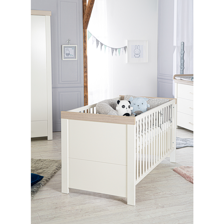 Roba Il lettino combinato Lucy ha i frontali bianchi, le sponde laterali nel colore Canadian White e la cornice in Luna Elm. La superficie del letto è di 70 x 140 cm. Per facilitare la salita e la discesa dal letto, è possibile rimuovere 3 pioli a doghe. Il piano di riposo è regolabile in altezza e può essere fissato in 3 diverse posizioni. Il lettino può essere facilmente trasformato in un letto junior con le sponde di conversione opzionali. Tutte le superfici sono lavabili e facili da pulire. Dettagli del prodotto: 3 posizioni regolabili in altezza 3 pioli scorrevoli Trasformabile in letto junior con sponde di trasformazione disponibili separatamente Dettagli tecnici: Colore: bianco Materiale: truciolato, rivestito in melamina Superficie di sdraio: larghezza x lunghezza 70 x 140 cm Dimensioni: larghezza x lunghezza x altezza 76 x 144 x 82 cm Incluso nella fornitura: Lettino Telaio a doghe Nota bene: materasso, sponde di trasformazione e decorazioni non sono incluse.