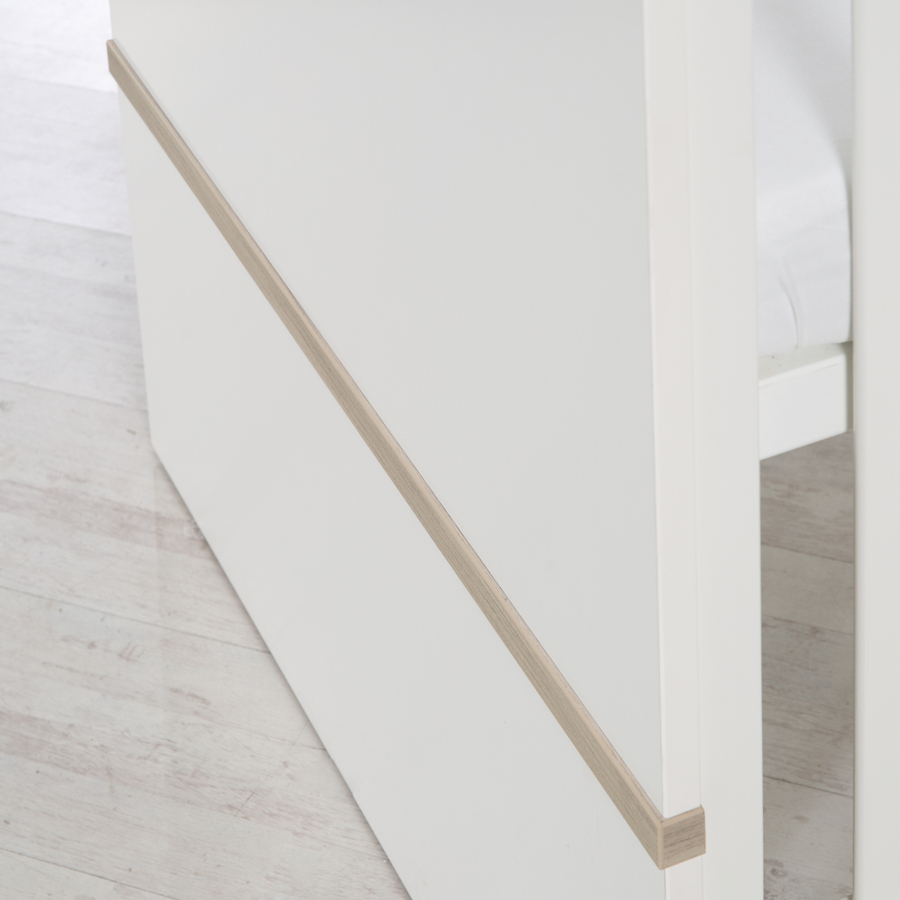 Roba Grazie al suo grande design, il lettino combinato Maurice è il pezzo forte della cameretta del bambino o della bambina. Il lettino e il letto per bambini crescono con il bambino fin dalla nascita. La posizione superiore del lettino combinato, regolabile in altezza in 3 posizioni, è particolarmente comoda per la schiena dei genitori di un bambino. Da questa comoda altezza si può facilmente sollevare il bambino dal lettino. I 3 pioli rimovibili dell'elemento reticolare del lettino consentono al bambino di salire e scendere in tutta sicurezza. Quando il bambino è più grande, il lettino combinato può essere trasformato in un letto junior con le sponde di conversione disponibili separatamente e con pochi semplici passaggi. Le sezioni testa e piedi del lettino combinato possono essere divise. roba Il lettino per bambini e ragazzi ha una base per materasso di 70 x 140 cm, doghe di alta qualità e nessuna vite visibile nella parte anteriore del letto. roba Se volete trasformare il vostro lettino in un luogo paradisiaco per sognare, il set per lettino da 4 pezzi composto da cuscino, coperta, baldacchino e nido è l'ideale. roba Il lettino combinato Felix è stato sviluppato in Germania ed è conforme agli attuali standard di sicurezza secondo la norma EN 716 - 1+2:2017. È stato prodotto nell'UE, certificato con l'Angelo Blu ed è facile da montare. Dettagli del prodotto Regolabile in altezza in 3 posizioni 3 pioli scorrevoli Sezione testa e piedi divisibile Trasformabile in letto junior con sponde di trasformazione disponibili separatamente Dettagli tecnici Colore: bianco / naturale Materiale: truciolato, rivestito in melamina Superficie di sdraio: larghezza x lunghezza 70 x 140 cm Dimensioni: larghezza x lunghezza x altezza 76 x 144 x 82 cm Attenzione: il materasso e le sponde di trasformazione non sono inclusi!