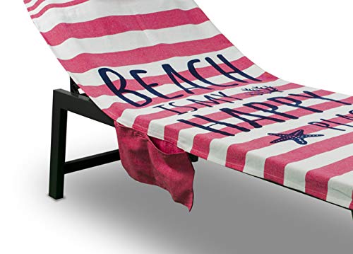 Telo Mare Lettino In Cotone Con Cuscino E Tasche Mod Happy Place Coral