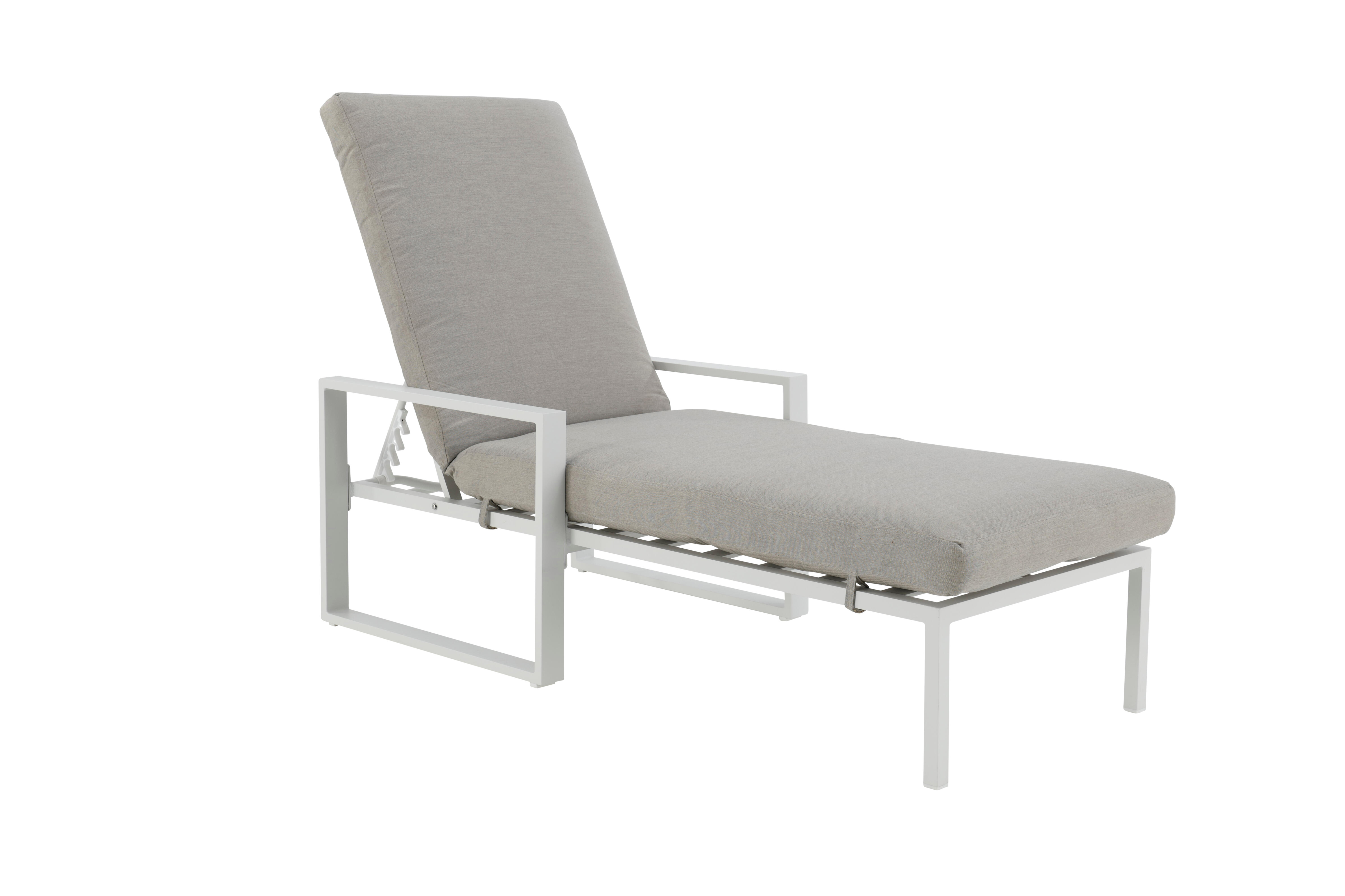 Lettino con cuscino di colore naturale e materiale principale alluminio. Lettino con cuscino da rilassarsi. Lettino con cuscino sfoderabile