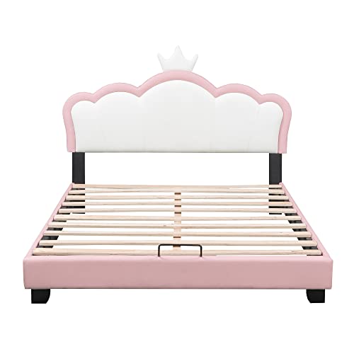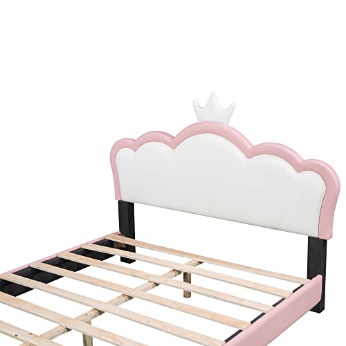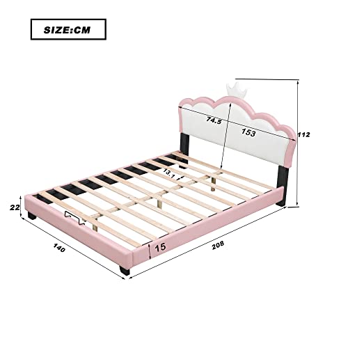 Lettino imbottito per bambini, 140 x 200 cm, con rete a doghe e schienale, letto per ragazze con forma a corona, rosa (140 x 200 cm)