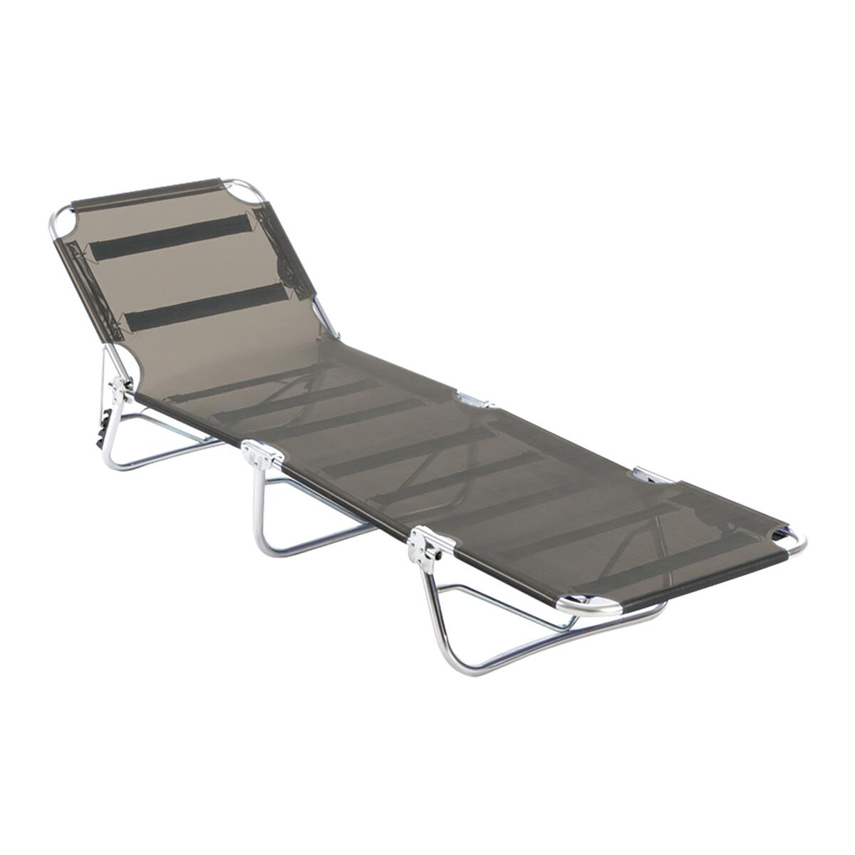 Lettini in alluminio pieghevole, con schienale regolabile in 3 posizioni.. Pratico e maneggevole, può essere facilmente riposto o trasportato. Struttura in alluminio, pieghevole, multiposizione, con poggiapiedi. Regolabile in diverse posizioni per il massimo relax