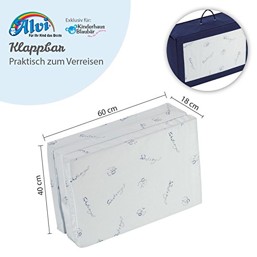 Alvi - Lettino da viaggio, materasso 60 x 120 cm pieghevole | Materasso con borsa per il trasporto | Spessore materasso 6 cm | Traspirante e lavabile & pieghevole | Fodera 100% cotone removibile | Comodo nucleo in schiuma