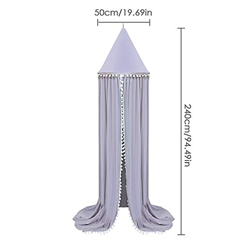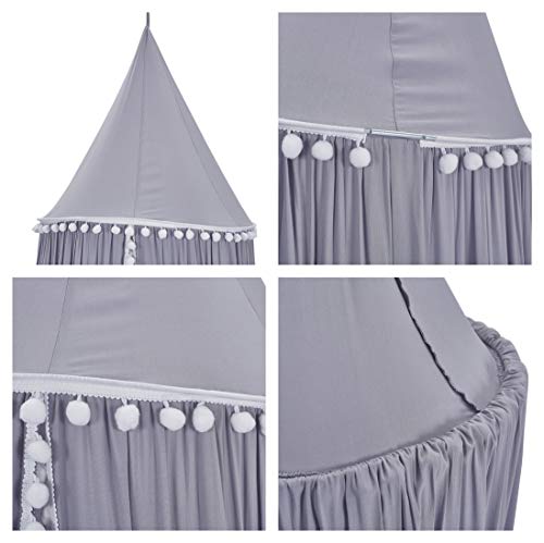 Letto a baldacchino con pompons per la camera dei bambini, Hanging zanzariera per lettino per bambini, Castello Gioco Tenda scuola materna Gioca Room Decor, Grigio