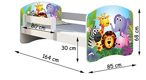Letto per bambino Cameretta per bambino con materasso Cassetto ACMA II (16 Il gatto 2, 160x80)