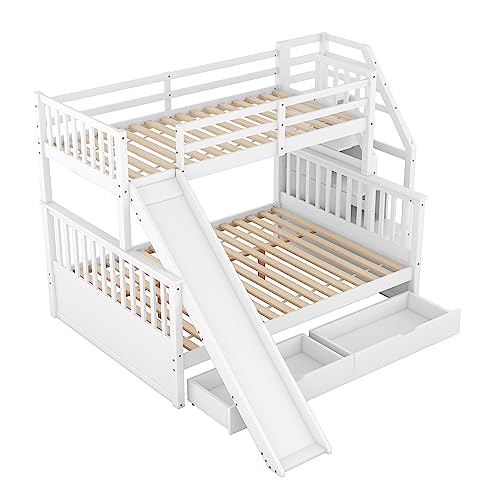 Letto a Castello per Bambini con Cassetti, Spazio e Pattini Multiuso Bianco 90x200 sopra 140x200